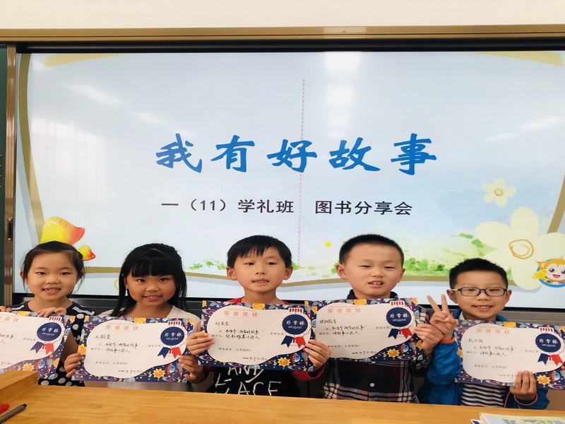 午饭后,一年级的同学们穿着戏剧服装,相聚在教室里,共同庆祝入校以来的第一个节日。一张张精美的书签,展示在班级的黑板;一本本精选的好书,在孩子们的手中传阅。在“好书交换”的活动中,孩子们争相上台。他们穿着与书中人物相同的服装,热情地向同学们推荐自己带来的绘本。虽然一年级的孩子才刚进校,但在“读绘本,讲故事”环节,孩子们还是能用流利的普通话和清亮稚嫩的童声给班级同学讲故事。《大卫,不可以》《你看起来很好吃》《红帽子女巫》……这一个个故事在他们说来别有一番味道。讲故事的孩子自信、大方,倾听的孩子也有滋有味,不时地鼓掌、大笑,无论是那神情飞舞、绘声绘色的表演,还是下面一张张认真倾听的小脸,都是孩子们在潜移默化中爱上阅读、喜欢阅读的体现。