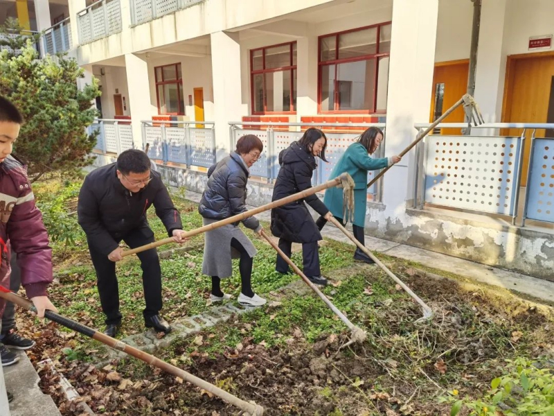 当天,杨春芳校长热情邀请嘉宾一起加入冬垦行动,挥起锄头,洒下劳动的汗水,在冬天准备好肥沃的土壤,为来年春播做好准备。