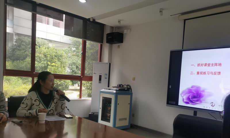 首先,由教学经验丰富的范丽华老师为我们年轻教师“支招”,她提出了三点建议和方法,一是抓好课堂主阵地;二要重视练习与反馈;三需“借力”提高学困生。范老师从教学实际出发,传授具体方法,分析真实事例,向我们传达了关于提高教学质量的深度思考。